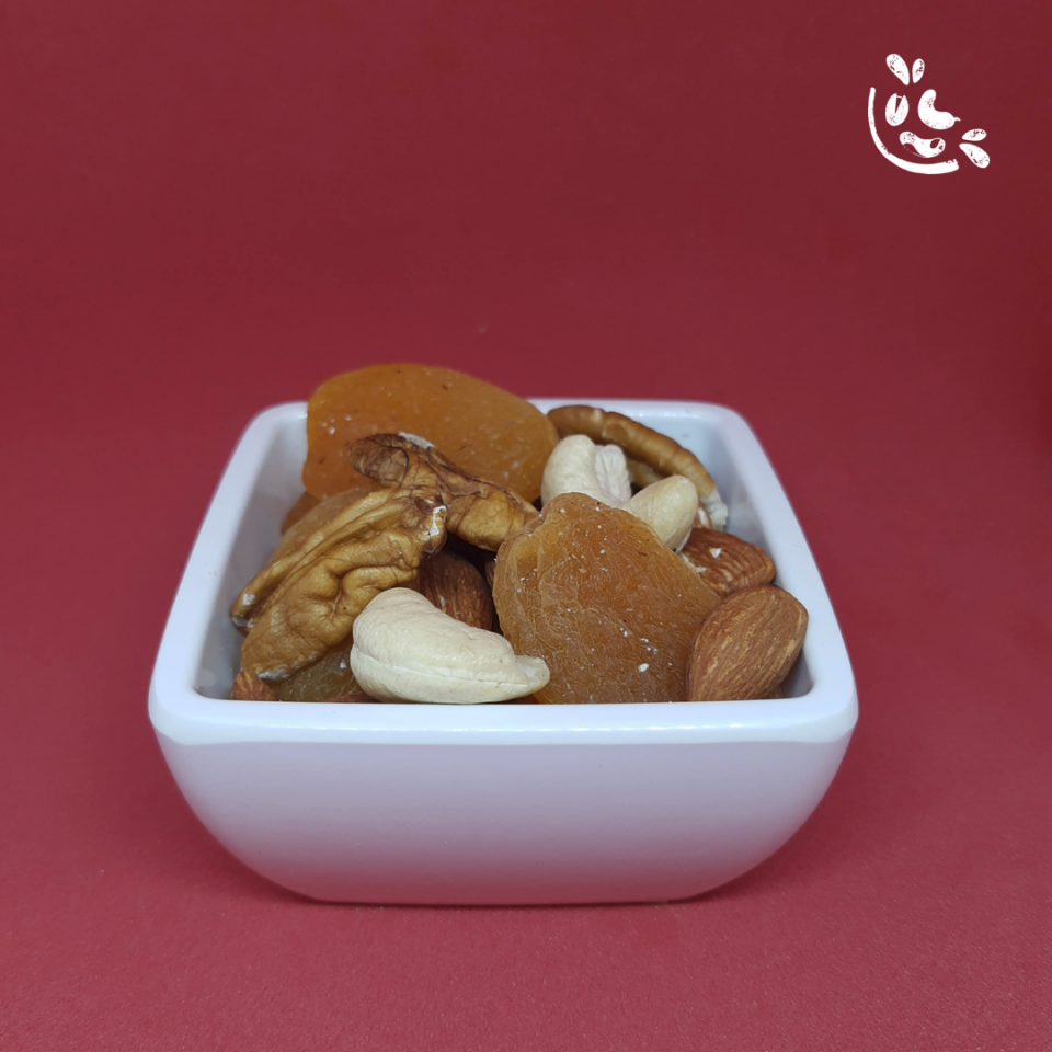 As oleaginosas são ricas em antioxidantes, proteínas, gorduras insaturadas, minerais e fibras.Além disso fornecem saciedade e ajudam a reforçar o sistema imunológico. O damasco por sua vez, é rico em fibras o que auxilia no funcionamento do intestino e ajuda a combater a vontade de consumir doces.